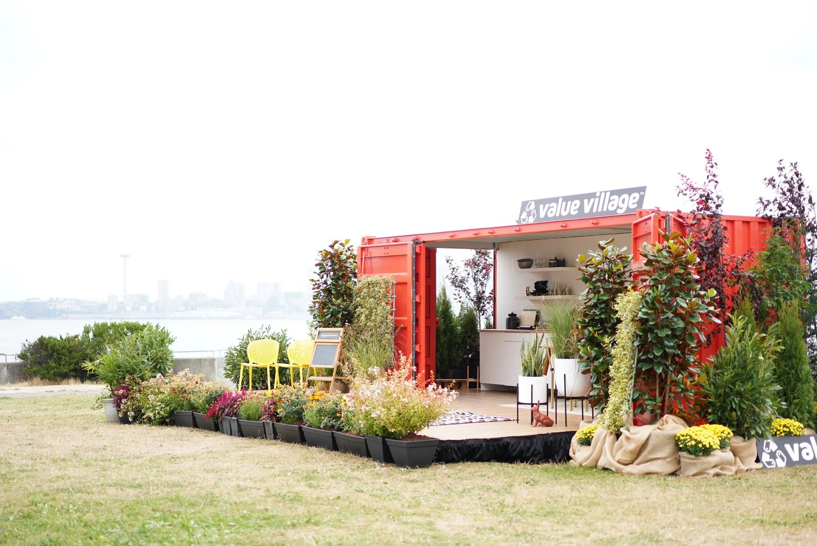 Teamed up with Value Village to outfit an empty shipping container with thrift goods from Value Village to create a one-of-a-kind family-friendly breakfast nook. The shipping container was located at Alki Beach in West Seattle, Washington.